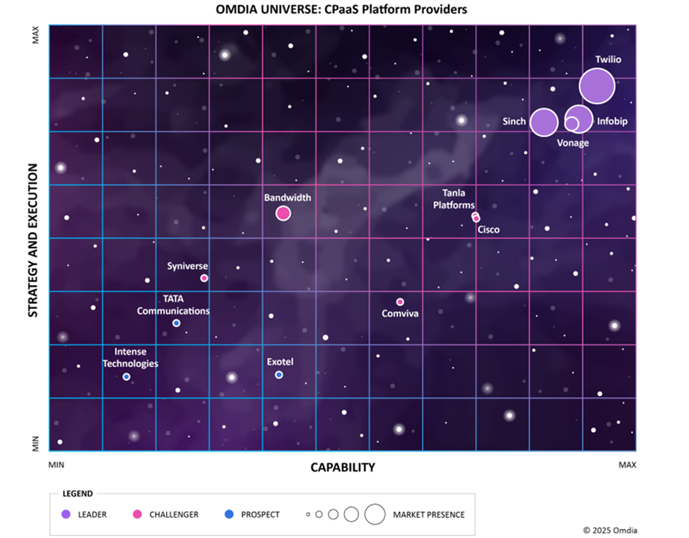 The Omdia CPaaS Universe report is a comprehensive analysis of the CPaaS market, drawing on the firm’s forecasting and enterprise insights survey data. The report provides a forward-looking matrix of capabilities, attributes, and features that are important within the market.